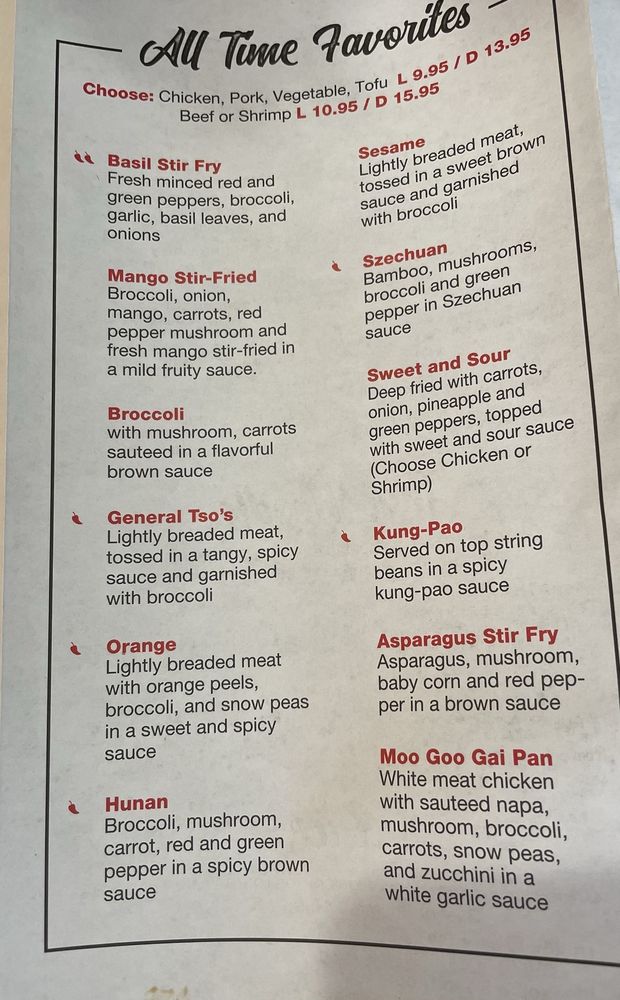 For heartier options, try the Basil Stir Fry or the renowned General Tso's Lunch, both delivering a memorable punch of spice. Customers rave about the freshness and generous portions, with many returning for favorites like Pad Thai and fiery peanut curry. The warm, kind service further enriches the experience.